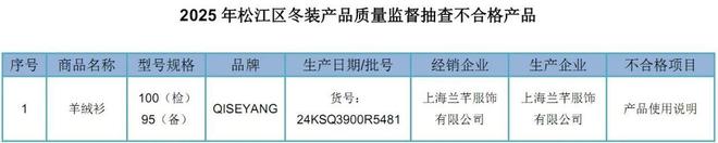 区市场监管局近日集中组织对本区流通领域和生产领域的冬装产品开展监督抽查,共计20批次。经检测,19批次合格,1批次不合格,合格率为95%,涉及的不合格项目为产品使用说明。