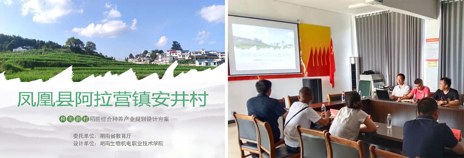 9月16日至17日,湖南生物机电职业技术学院专家团队赴凤凰县阿拉营镇安井村(湖南省教育厅驻村点)开展产业规划设计方案汇报工作,获得了与会各方的高度评价。
